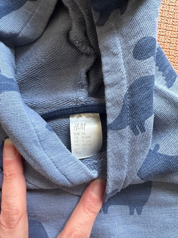 Vends ce pull à capuche avec des dinosaures de la marque H&M en taille 9-12mois (80cm). Il a été très peu porté. En excellent état
