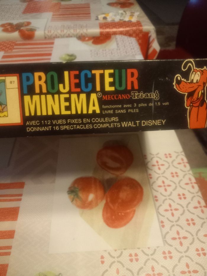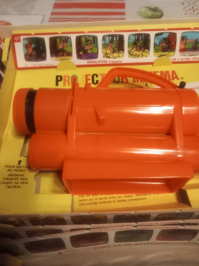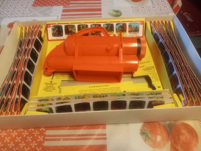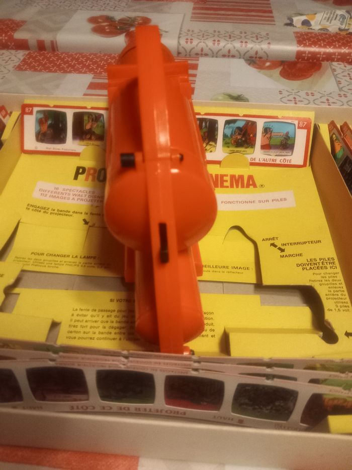 Ancien projecteur Minéma fabriqué par Meccano-Triang, création Kenner. Complet avec 16 bandes de 7 diapos d'histoires par Walt Disney État satisfaisant je n'ai pas testé si le projecteur fonctionne