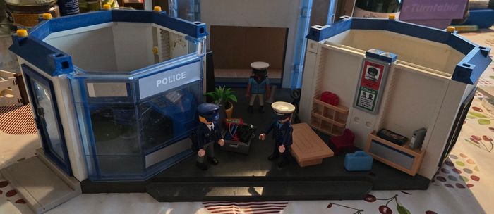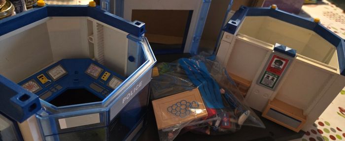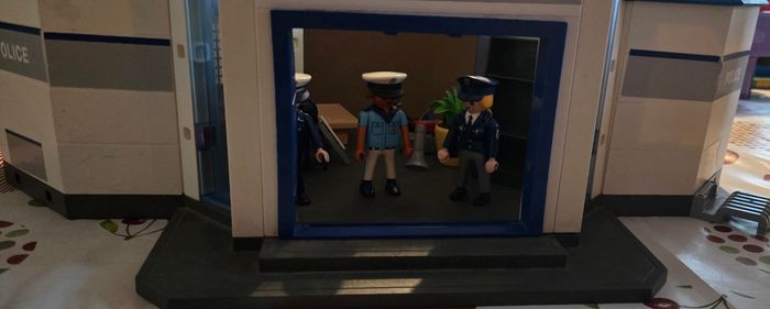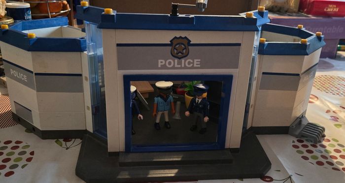 Commissariat de police playmobil avec personnages et accessoires manque les porte d entrée ne gêne pas le jeux