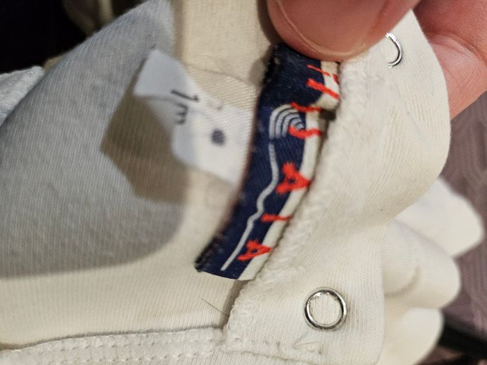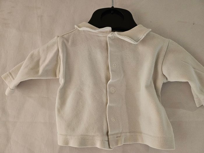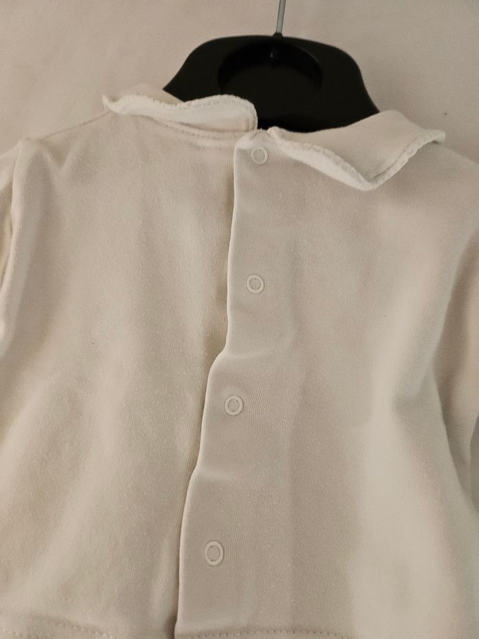 T-shirt manches longues blanc avec col. Ouverture totale dans le dos par pressions. Marque : Tissaia Taille : 1 mois