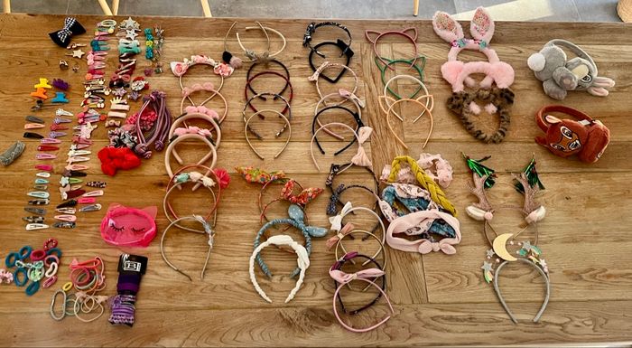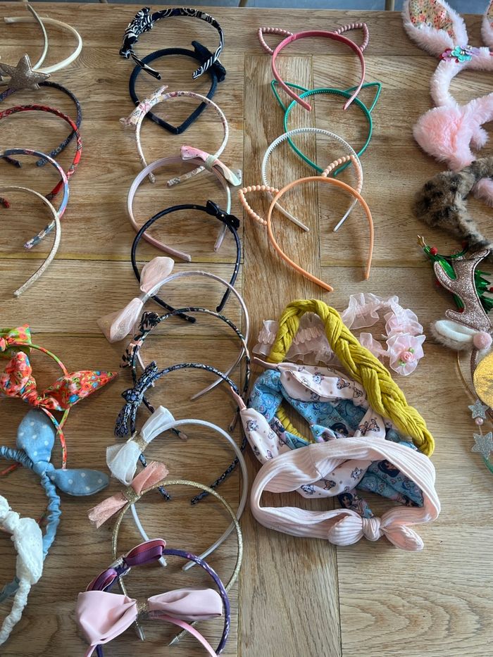• 40 Serre-têtes variés : Oreilles de chat, fleurs, paillettes, nœuds, modèles en tissu tressé et même serre-tête déguisement "Licorne/ Étoile", "Renne de Noël" et sapin.