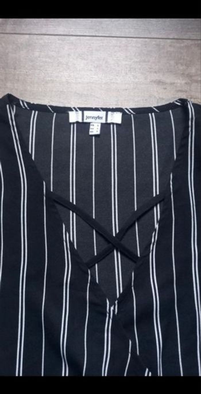 🖤 Belle blouse noir avec rayures blanches 🔖 Marque Jennyfer 📏 Taille S - Décolleté croisé - Le bas et les manches sont élastiques ✅️ Neuve, jamais portée ✨ Petit prix, à saisir 📦 Envoi rapide et soigné 🏷 N'hesitez pas à regarder mes articles, il y a des réductions sur les lots 🤗