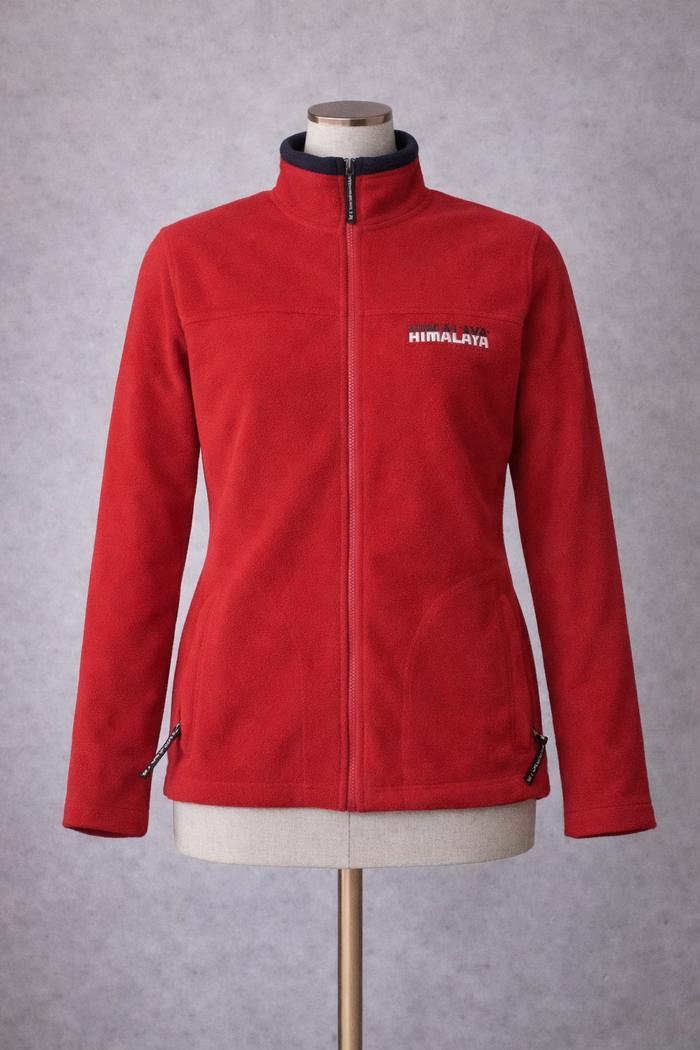 blouson polaire rouge Himalaya avec capuche rentré dans le col