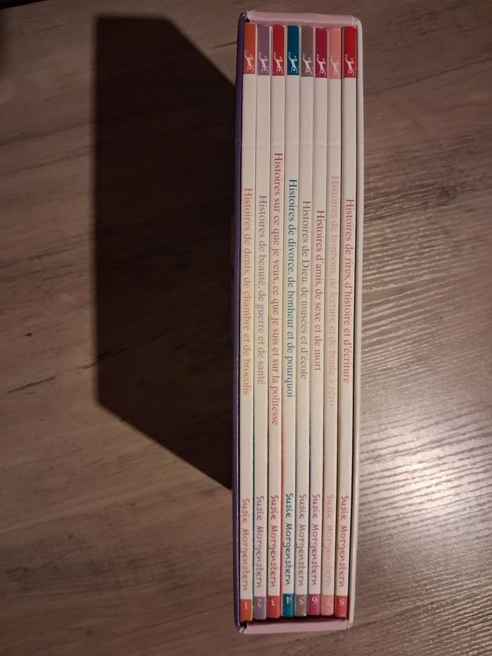 Vends ce superbe coffret "Super Ma Boîte à histoires" de la célèbre auteure jeunesse Susie Morgenstern, publié chez De La Martinière Jeunesse. ​Un concept original et pédagogique pour aborder des questions de vie avec humour et malice. ​Contenu : L'ensemble comprend 8 livrets thématiques (3 histoires par livret), soit un total de 24 histoires captivantes. ​Thématiques : Des "questions malicieuses" pour aider les enfants à réfléchir sur le monde qui les entoure tout en s'amusant. ​Format : Un coffret rigide pratique pour ranger les livres soigneusement dans la bibliothèque. ​État : Très bon état général. ​Idéal pour le rituel de l'histoire du soir ou pour les jeunes lecteurs qui commencent à lire seuls. ​Pourquoi ce prix (12 €) ? ​Valeur réelle : Ce coffret complet se vendait neuf aux alentours de 20 € à 25 €. ​Le calcul : Cela revient à seulement 1,50 € par livre, ce qui est très attractif pour un auteur de ce renom.
