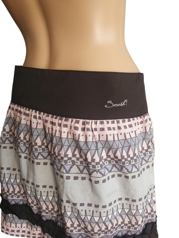 🌿 Craquez pour cette jupe courte Smash!, une pièce indispensable pour dynamiser votre garde-robe de saison. Alliant un imprimé ethnique ultra-tendance et une coupe patineuse légère, elle est parfaite pour celles qui recherchent un look à la fois original et féminin. 💖 Pourquoi on l'adore 💖  🩵 Design Unique : On craque pour ses motifs géométriques dans des tons doux (vieux rose, gris, bleu pastel) soulignés par une large ceinture noire contrastante. 🖤 Détails Féminins : Le bas de la jupe est agrémenté d'un volant noir froncé qui apporte du mouvement et une touche de peps à votre silhouette. ❤️ Confort Absolu : Sa composition riche en coton assure une grande douceur, tandis que l'élasthanne offre la souplesse nécessaire pour une liberté de mouvement totale tout au long de la journée. 🤍 Cette mini-jupe imprimée se porte aussi bien avec des baskets pour un look décontracté qu'avec des bottines pour une allure plus rock. 🏷 Marque : Smash! (logo brodé sur la ceinture) 🧶 Composition : 65% Polyester, 30% Coton, 5% Élasthanne 📐 Taille 40/42 🏠 Prix boutique : environ 50€ 📏 Pour vous assurez qu'elle vous ira parfaitement fiez-vous à la grande sagesse de Maître Ruban⤵️   Taille : 41 cm Longueur  : 37 cm 💡 Suggestion mode : Mariez cette jupe bohème avec un petit top noir uni et une veste en jean pour un ensemble estival irrésistible ! 🌟 Très bon état 🌟  📦 Envoi rapide et soigné    📍 Jupe graphique , Look festival , Mode éthique originale , Jupe fantaisie femme ,Style Arty