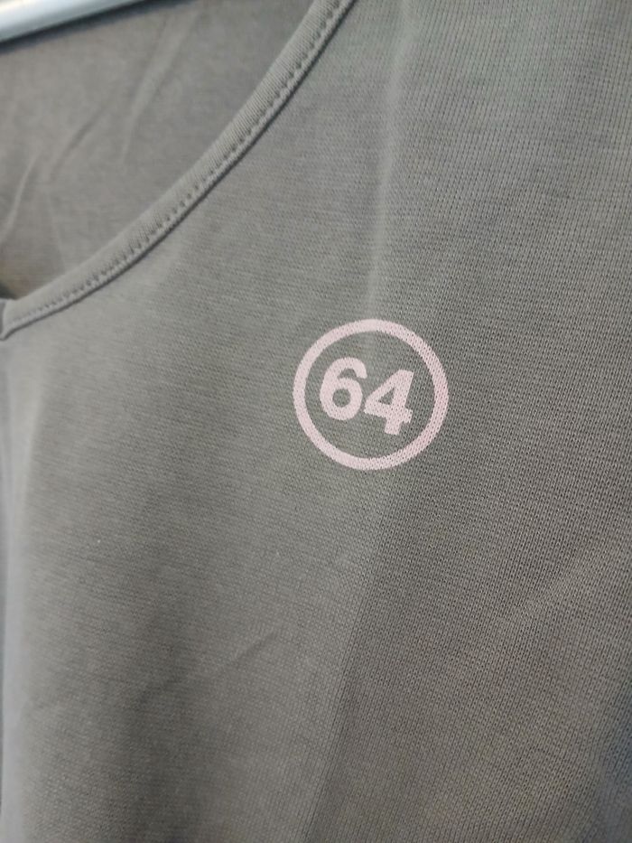 T-shirt femme manches longues SOIXANTE QUATRE. Très bon état général. Taille : L ou 40. Couleur : gris. Sérigraphie devant et dos. Prix d'achat en boardshop : 35 euros. Vendu 10 euros.