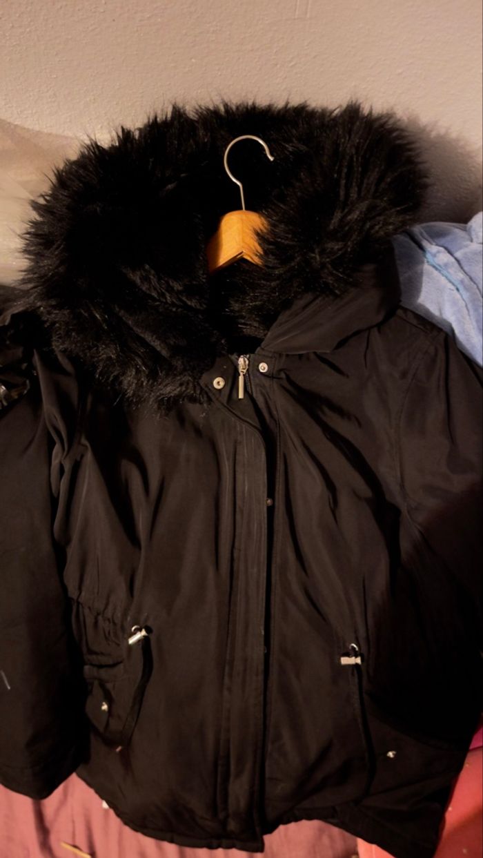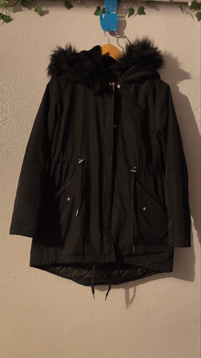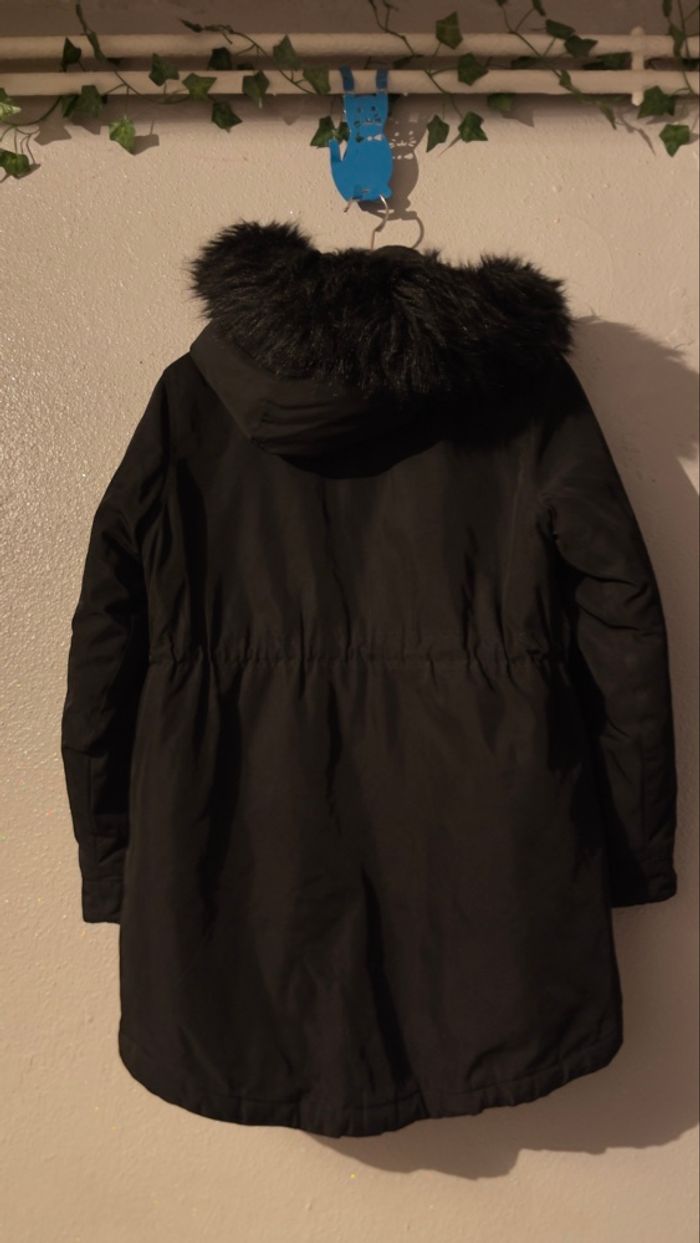 Vend parka noire de la marque dont call me Jennyfer, en très bon état Capuche avec grosse fausse fourrure Plus longue à l’arrière Taille M Peu portée , très propre Envoie rapide et bien soigné