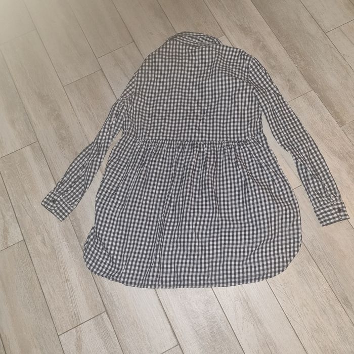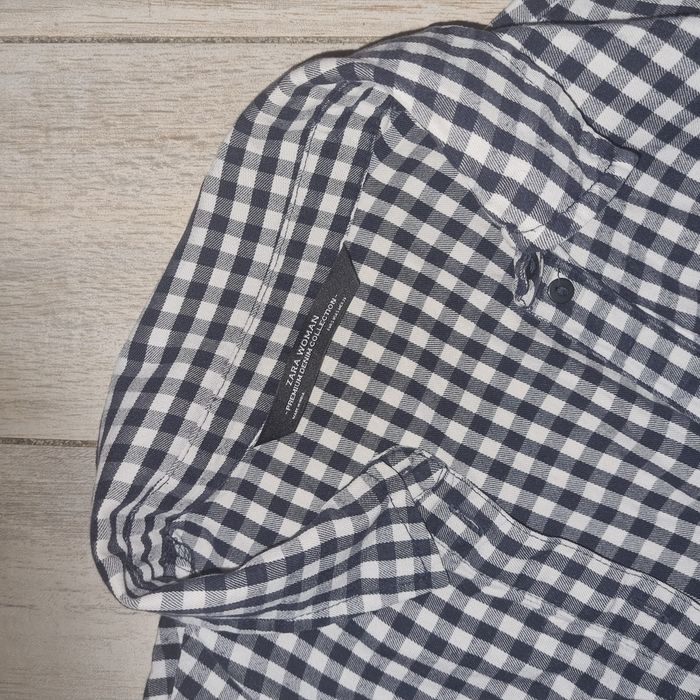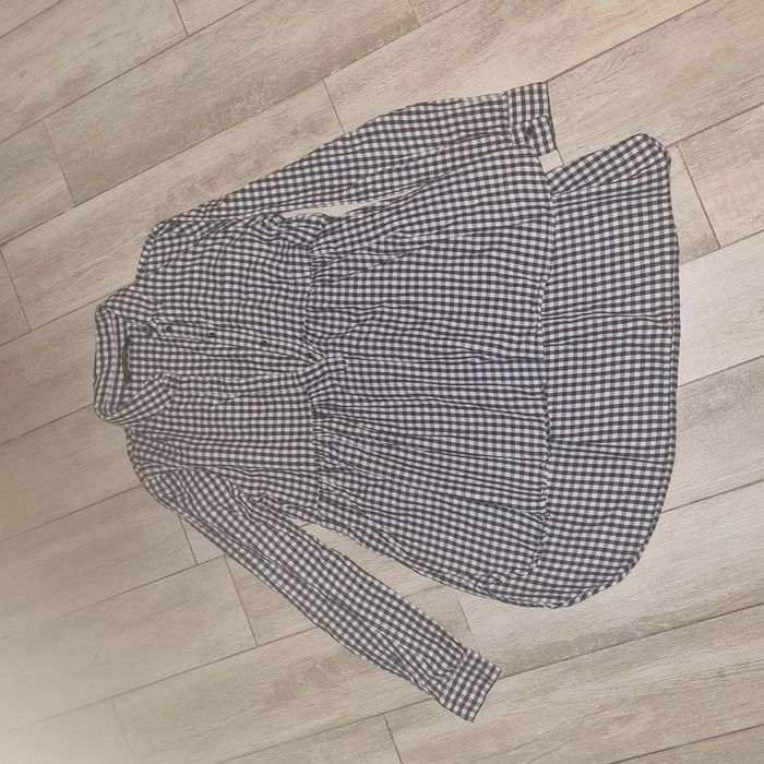 Chemise tunique longue derrière et plus courte devant. A carreaux vichy noir et blanc. Très bonne état. Marque zara taille S