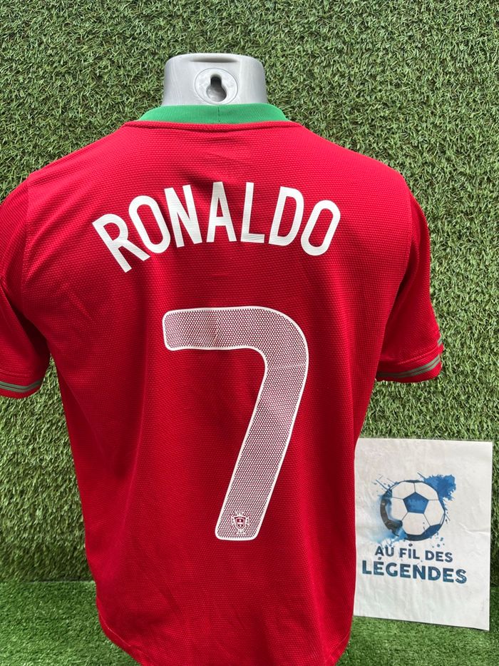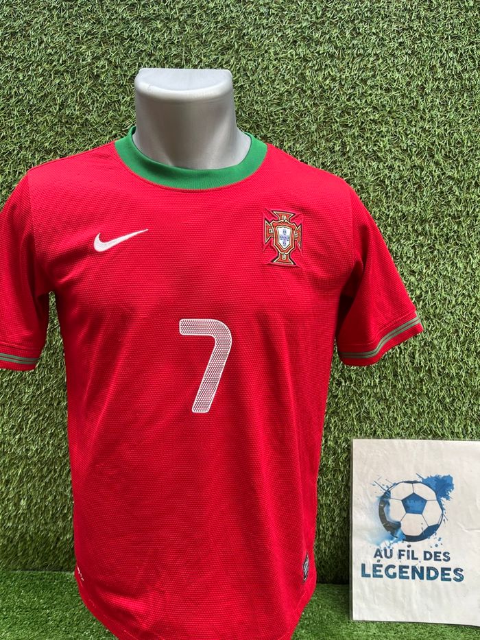 Bonjour Maillot Ronaldo avec le Portugal Occasion Pour homme Taille XS Marque Nike Saison 2011/2012 Authentique Matière polyester Le maillot est en très bon état malgré de petits accroc très peu visible Flocage joueur au dos en très Bon état Les logos brodés sur la poitrine sont également en excellent état Très belle pièce de football Maillot domicile des portugais pour l’euro 2012