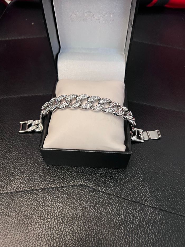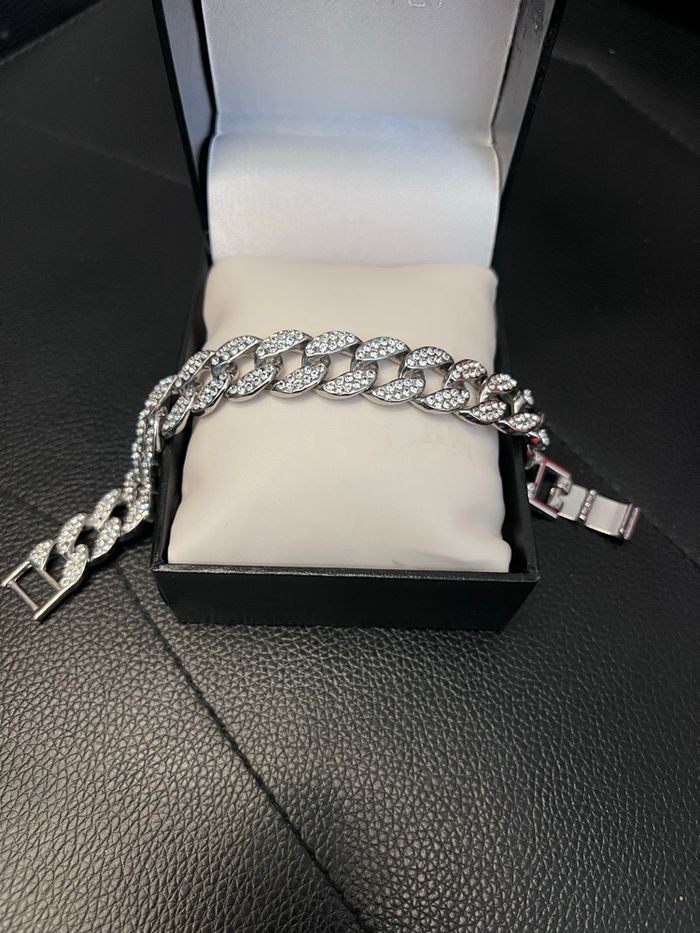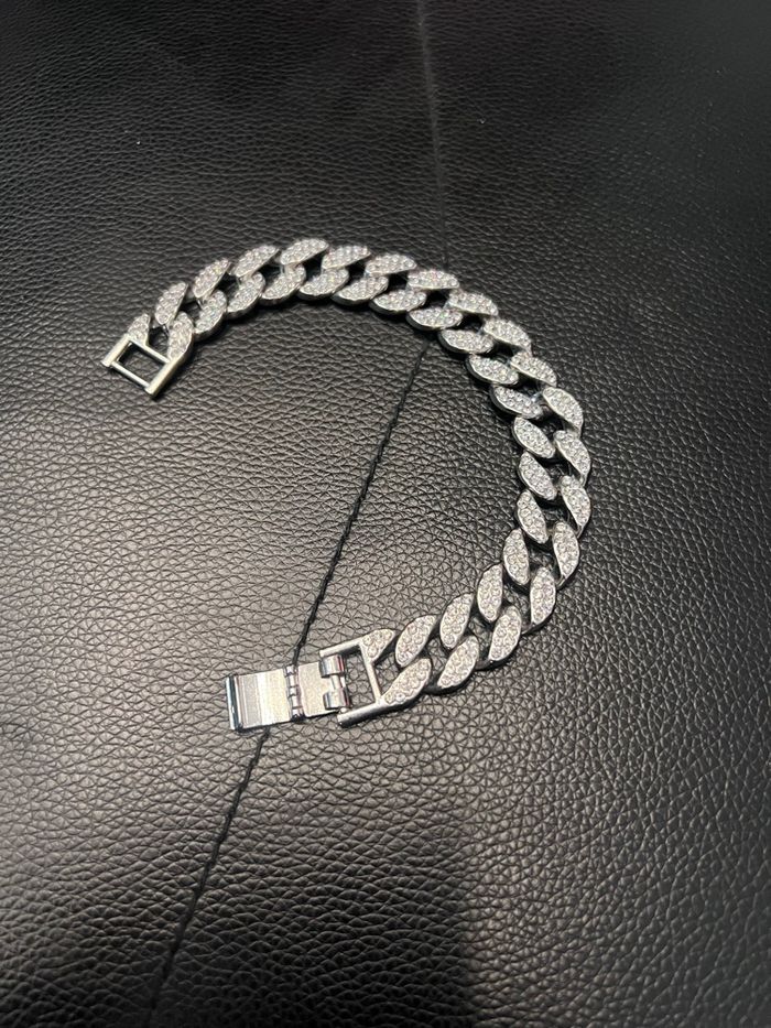 Bracelet à mailles cubaines avec diamants Strass Neuf jamais porté
