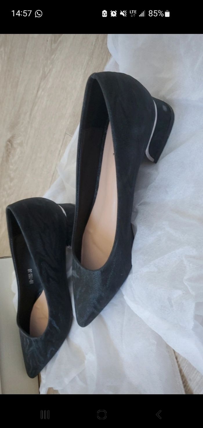 Vend chaussure talon femme noir paillette Neuf sans l'étiquette Porter 1x pour l'essayer mais j'aime pas ne me conviens pas du tout
