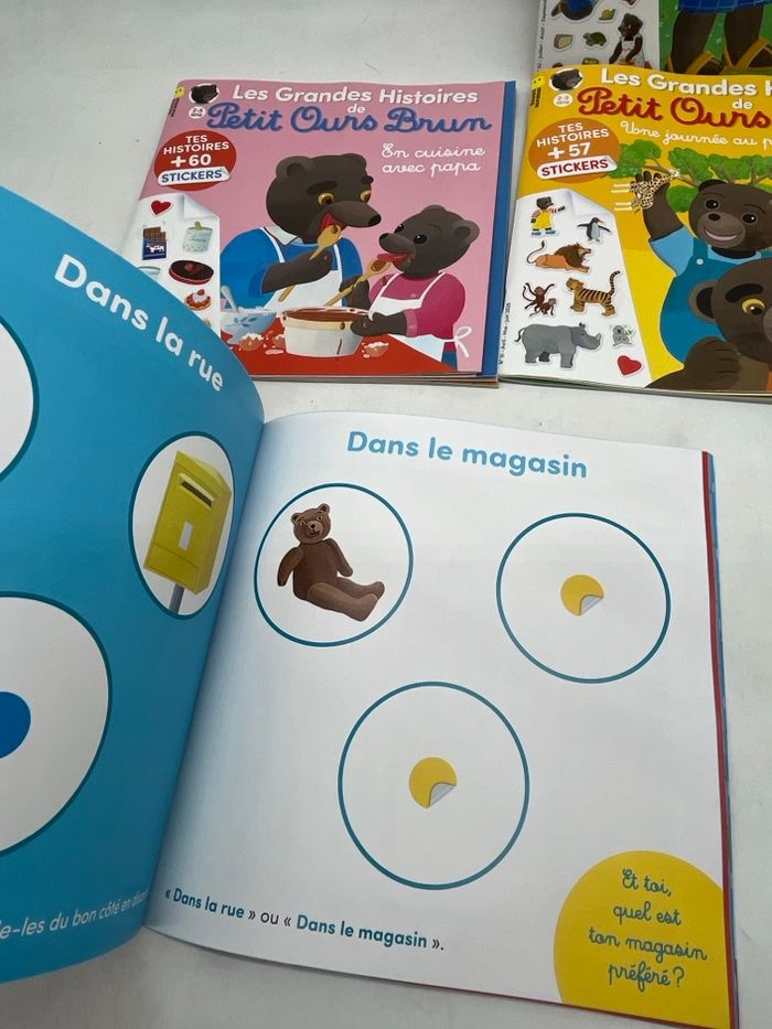 Lot de 4 magazines Livres d’activités Les grandes histoires de Petit Ours brun Neuf Les livres sont neuf comme en boutique ! Les grandes histoires de Petit Ours brun thème Magasin de jouets Les grandes histoires de Petit Ours brun thème le pique nique Les grandes histoires de Petit Ours brun en cuisine avec Papa Les grandes histoires de Petit ours brun le parc animalier Le lot n’est pas dissociable!!! À l’intérieur des magazines vous trouverez des histoires des gommettes des imagiers totalement neuf etc … laboutiquedulivre