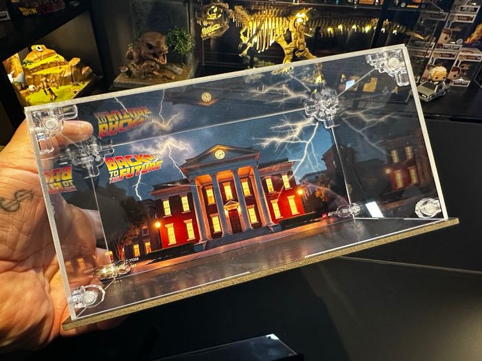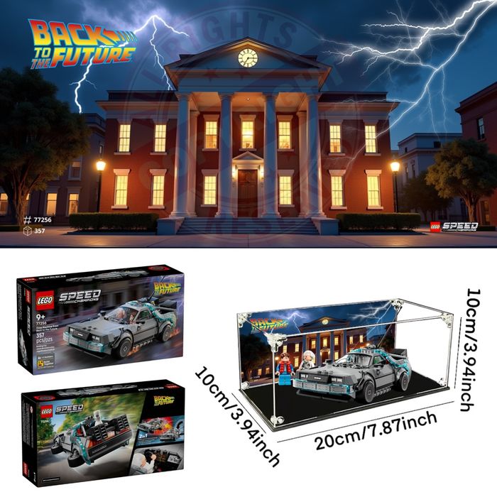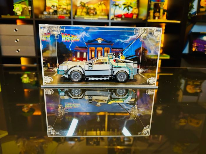 Je vends une vitrine d'exposition 20×10×10 cm à assembler soi-même, avec une image de fond (papier 200gr imprimé chez un professionnel) Hill Valley + éclair inspirée de Back to the Future, idéale pour exposer la voiture LEGO DeLorean (set 76956). 📦 Contenu du lot : • Vitrine en acrylique a monter • Les parois sont protégées par un film de protection dans l'emballage • Fixation avec vis transparentes pour une structure solide • Image Hill Valley avec éclair, fournie séparément dans la boîte. • Points forts : • Montage simple, tout est fourni • Films de protection garantissant des plaques sans rayures • Vis transparentes pour un rendu propre • Scène fidèle au film pour mettre en valeur la DeLorean et les minifigs ⚠️ LEGO et minifigs non inclus, seule la vitrine + l'image sont vendues. Envoi rapide et bien protégé.