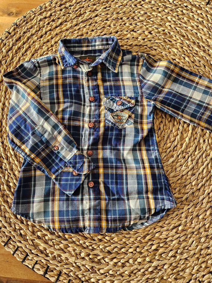 Lot de 5 chemises manches longues, à carreaux bucheron, effet jean, col bateau Taille 4 ans