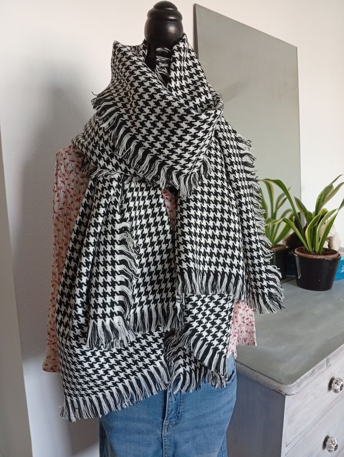 Écharpe noir et blanc oversize . Unisexe  - photo numéro 1