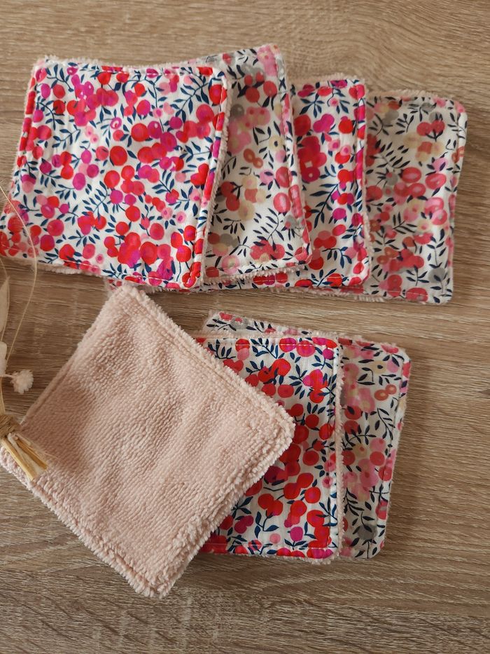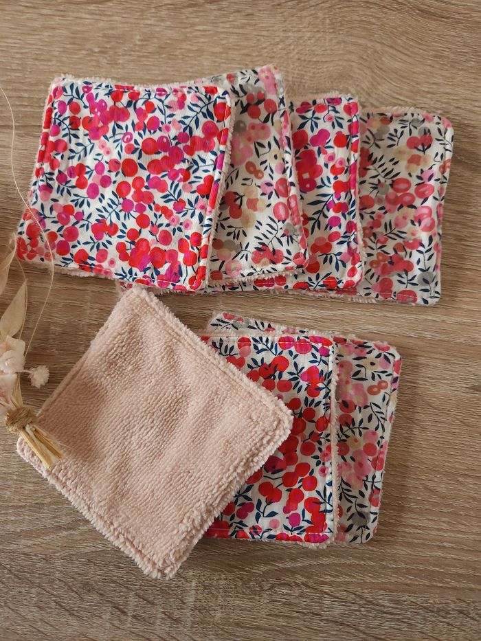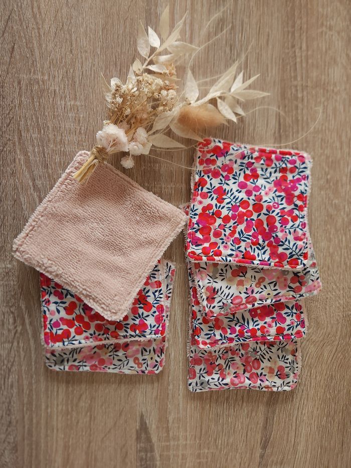 Cotons lavables en liberty Assortiment de liberty 7 cotons taille 10x10cm Liberty et éponge de bambou hyper absorbante et douce même après des centaines de lavages