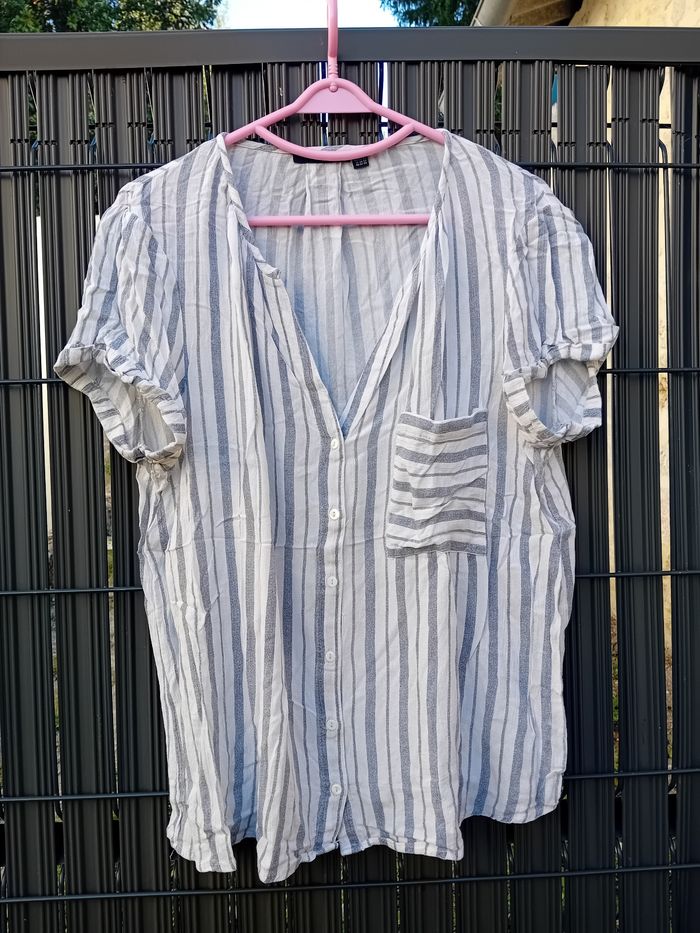 Chemise à rayures blanches et bleues En coton Taille 46/48 XL Marque Kiabi