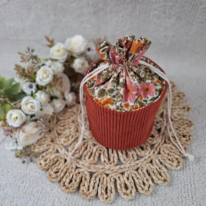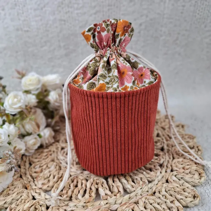 - Joli pochon rond pour ranger et transporter vos produits de toilettes ou maquillage . - Parfait pour offrir ou se faire plaisir - Composition tissus 100 % Coton et velours côtelé 100% Polyester - Couleur terracotta - Dimension environ 13 cm de diamètre sur une hauteur de 22 cm total le velours côtelé mesure 14 cm de hauteur #LaboutiquedeCharliepochonrond