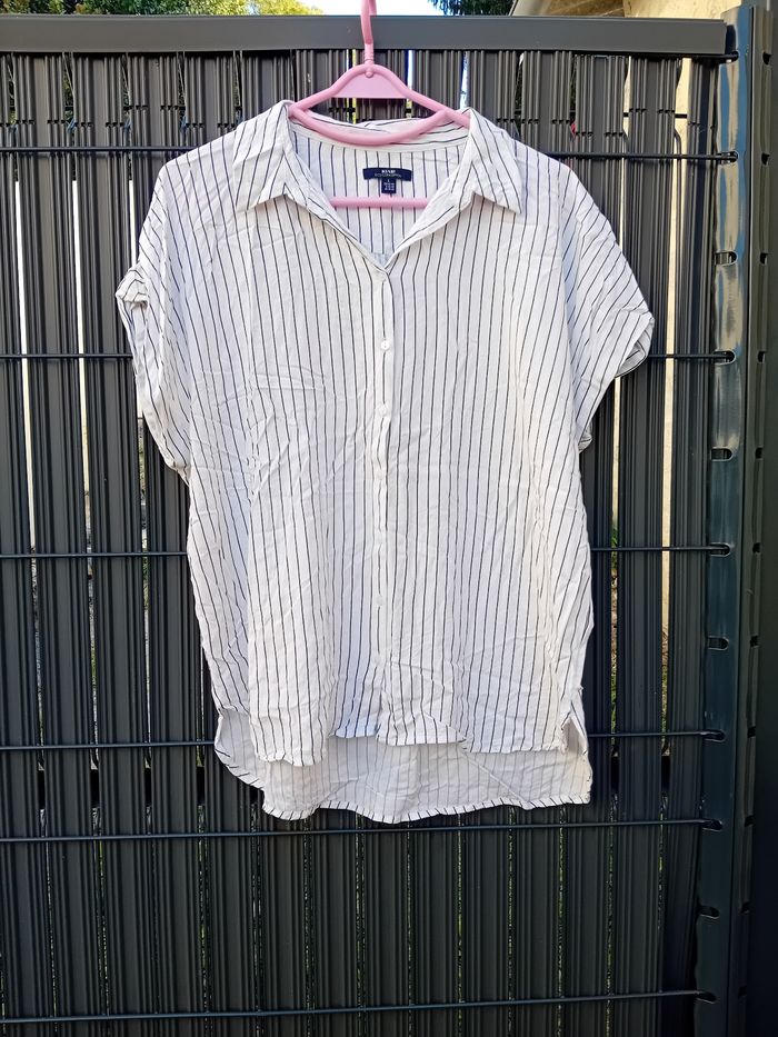 Chemise à rayures blanches et noires à manches courtes Pas d'étiquette matière Taille 42/44 Marque Kiabi