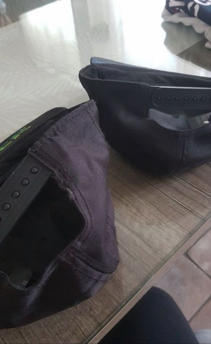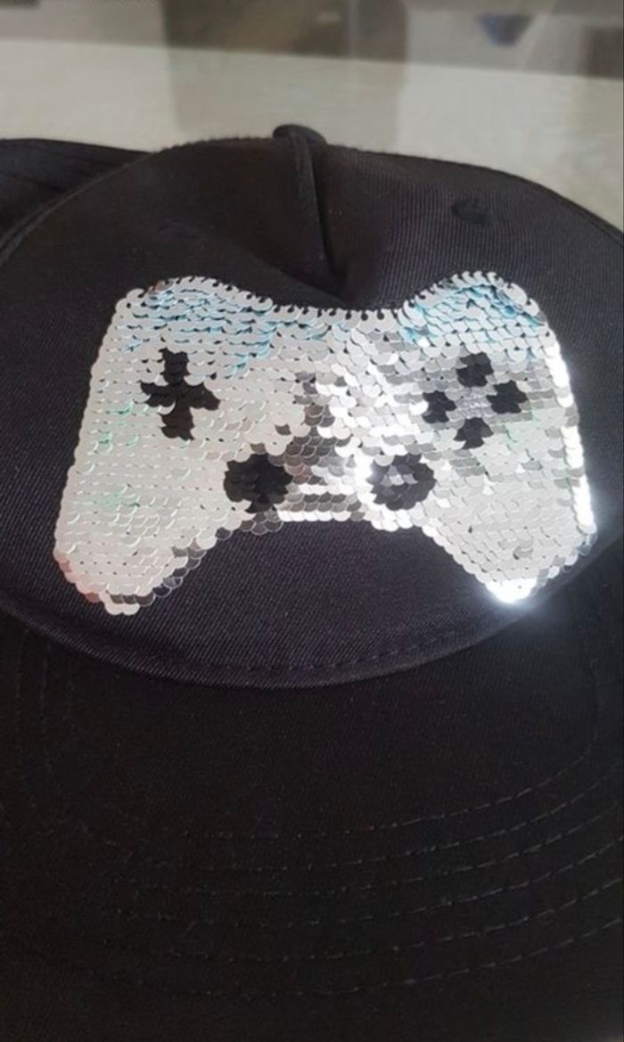 Envoi très rapide. Lot de deux casquettes gamer et PlayStation de chez h&m . La PlayStation na jamais été porté. L’autre casquette avec manette en sequin quelques fois seulement et légère imperfection au niveau de la couture derrière où se règle la casquette. Voir défaut couture dernière photo. Taille 134 - 152 cm Cordialement