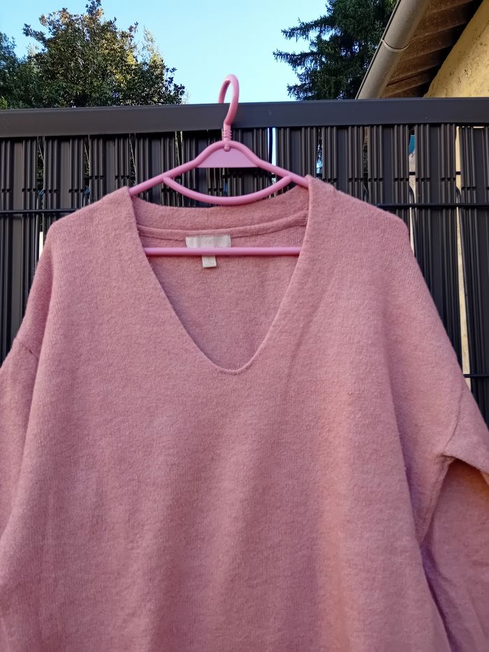 Pull-over rose col V En polyester, acrylique, laine et elasthanne Taille S 36 Marque H&M