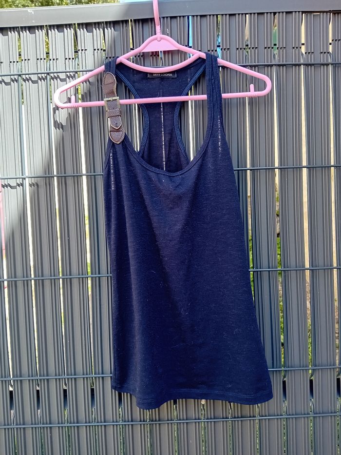 Débardeur bleu marine avec bretelle abîmé voir photos Pas d'étiquette matière Taille S 36 Marque Miss Loona