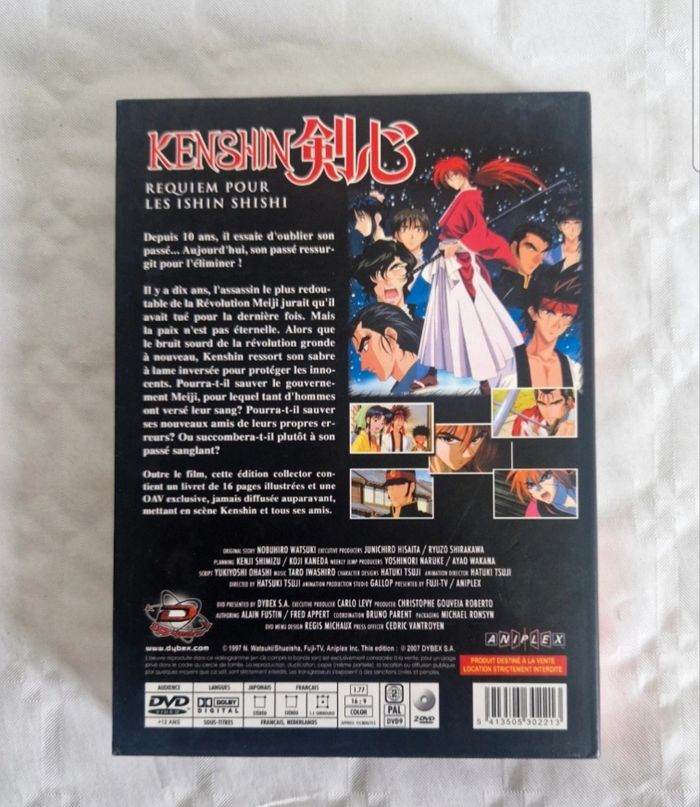 Bonjour, ​Je propose cette édition collector double DVD du film d'animation "Kenshin le Vagabond : Requiem pour les Ishin Shishi". ​Détails de l'objet : ​Contenu : Édition comprenant deux disques (le film et les bonus ) ainsi qu'un livret illustré de 16 pages inclus au coffret État physique : Très bon état général ​Complétude : Objet complet avec son fourreau, son boîtier de type Digibook, ses deux DVD et son livret interne. ​ #Kenshin #Anime #Manga #Samurai #DVD #Collector #Animation