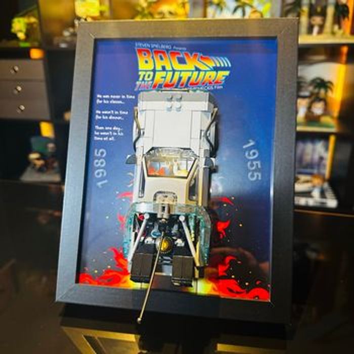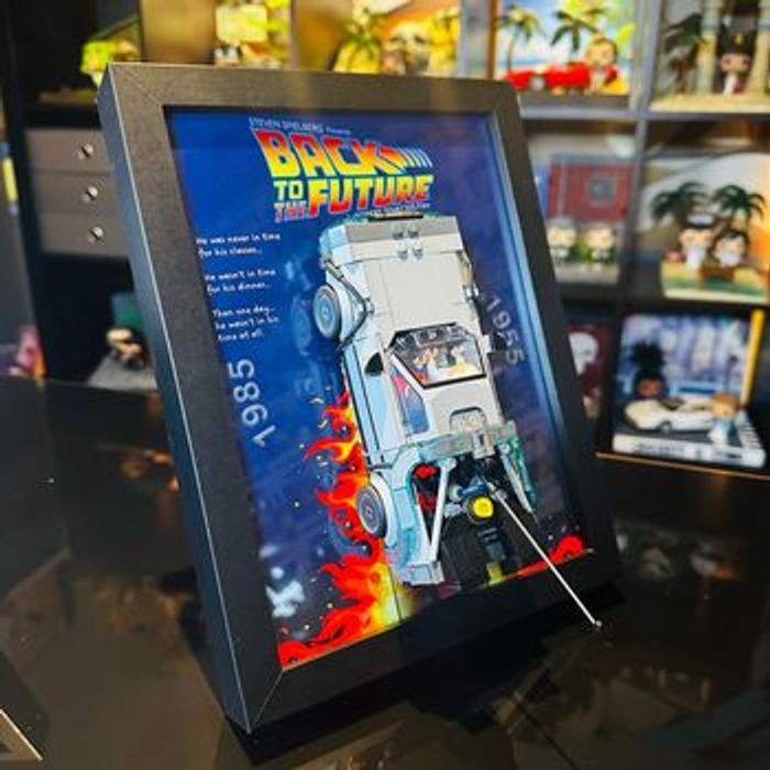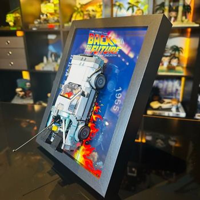 ⚡ Cadre décoratif premium compatible LEGO DeLorean 77256 – Back to the Future Cadre haut de gamme pour exposer votre LEGO Speed Champions DeLorean. Détails : ✔️ Fond exclusif ✔️ Impression professionnelle 200g ✔️ Format 18×24 cm ✔️ Cadre épais avec vitre en verre ✔️ Traces de feu iconiques ✔️ Supports LEGO intégrés ✔️ Compatible set 77256 ⚠️ Voiture LEGO non incluse. Pièce unique Envoi rapide et emballage soigné. Idéal pour collectionneurs et fans de cinéma.