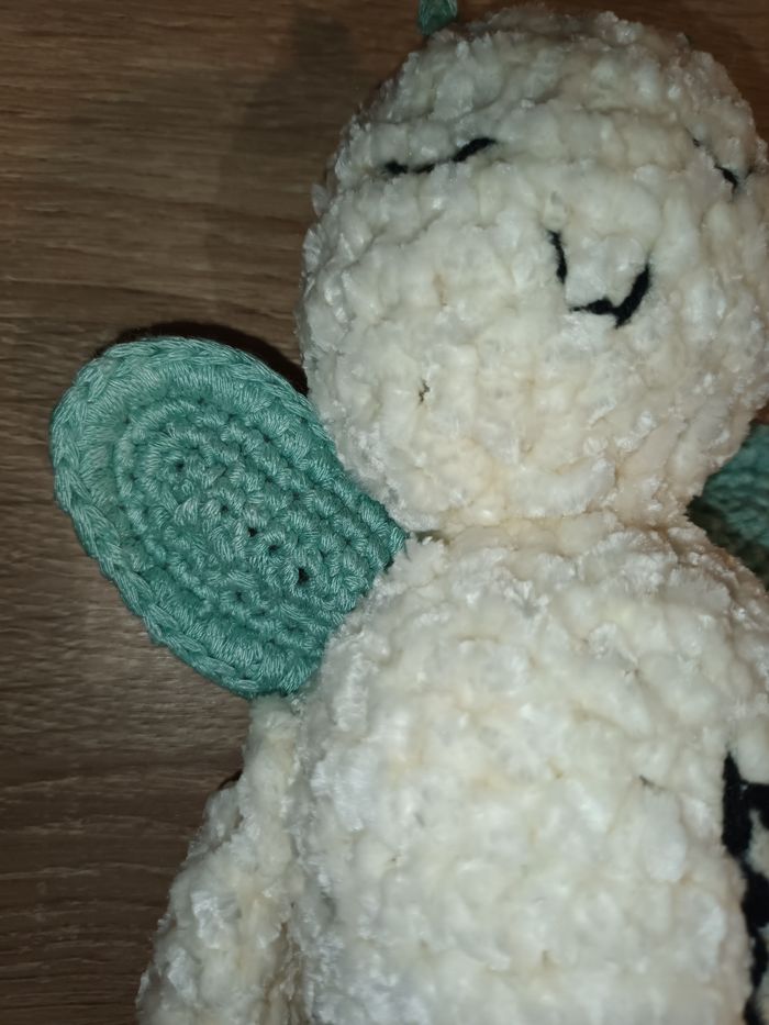 ✨ Luciole “Doudine” faite main au crochet Création artisanale unique — Les petites mailles de Mathilde • environ 20 cm • laine chenille toute douce • ailes & antennes phosphorescentes (brillent dans le noir) • note de musique brodée • rembourrage moelleux • pièce unique Parfaite en doudou déco, cadeau naissance ou chambre d’enfant 💛 🧵 Fait main avec soin 📦 Envoi soigné et rapide 🚫 Article artisanal — non certifié norme jouet (utilisation sous surveillance adulte)