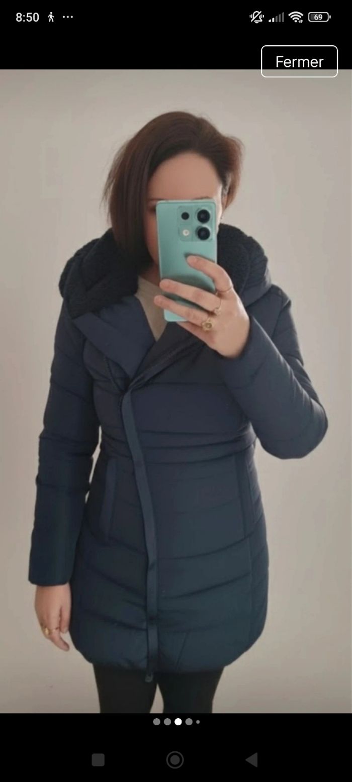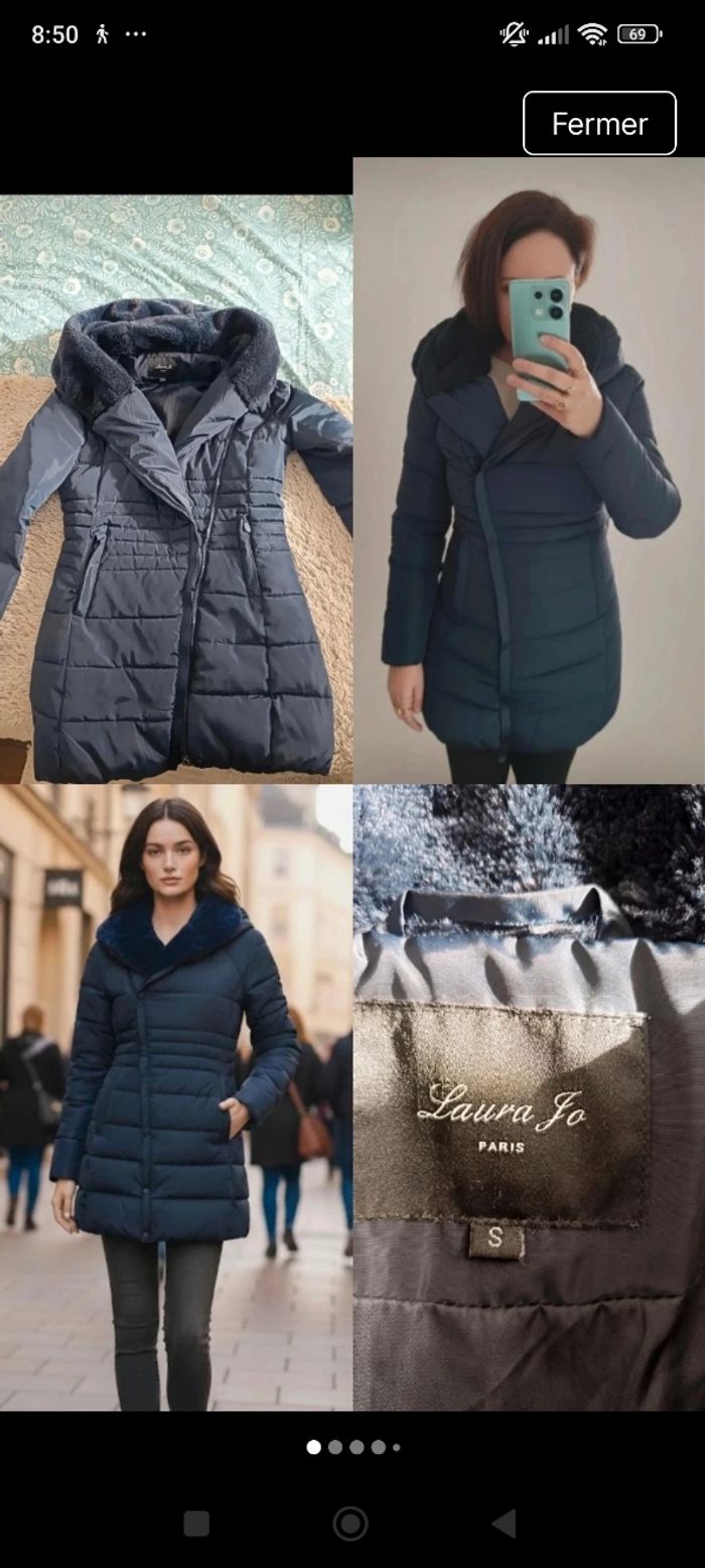 Doudoune Laura Jo Très chaude et agréable à porter. Léger raccommodage sur une poche. Grande capuche pour se protéger ou la transformer en un beau col en fourrure. Prix négociable.