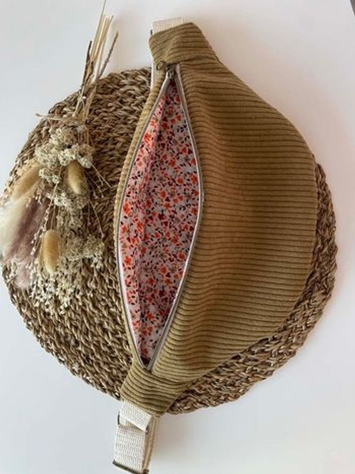 Sacoche banane fait main en tissu velours côtelé ocre - photo numéro 3
