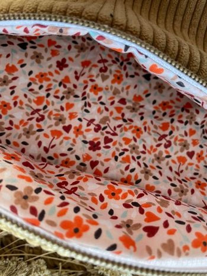 Sacoche banane fait main en tissu velours côtelé ocre, idéale pour un usage quotidien 🌿 📏 Dimensions : environ 33 x 17 cm (avant les attaches) 📐 Longueur de sangle : environ 1,10 m (réglable) 🎒 Sangle couleur écru 🌸 Intérieur fleuri 🔒 Fermeture zippée solide ✨ Pièce artisanale, pratique pour téléphone, portefeuille et petits essentiels ✉️ Envoi rapide et soigné N’hésitez pas si vous avez des questions 🙂