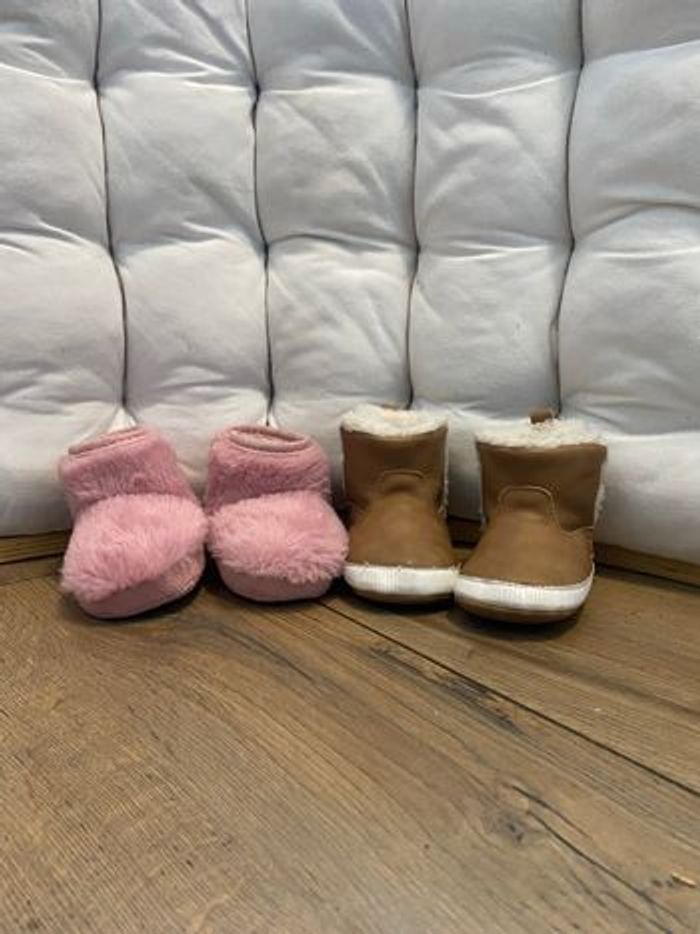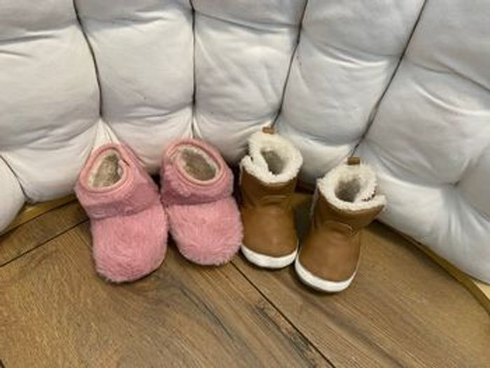 Lot de deux paires de chaussons/ chaussures pour bébé. En parfait état. Taille approximative : 18/19