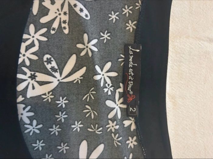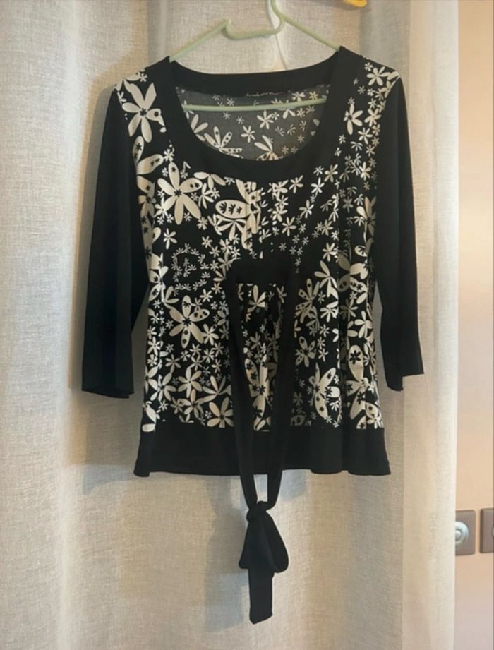 Haut manche 3/4 LMV Petite ceinture pour nouer derrière Dimensions : aisselle / aisselles 41 cm Aisselle/ bas 40 cm Taille 2