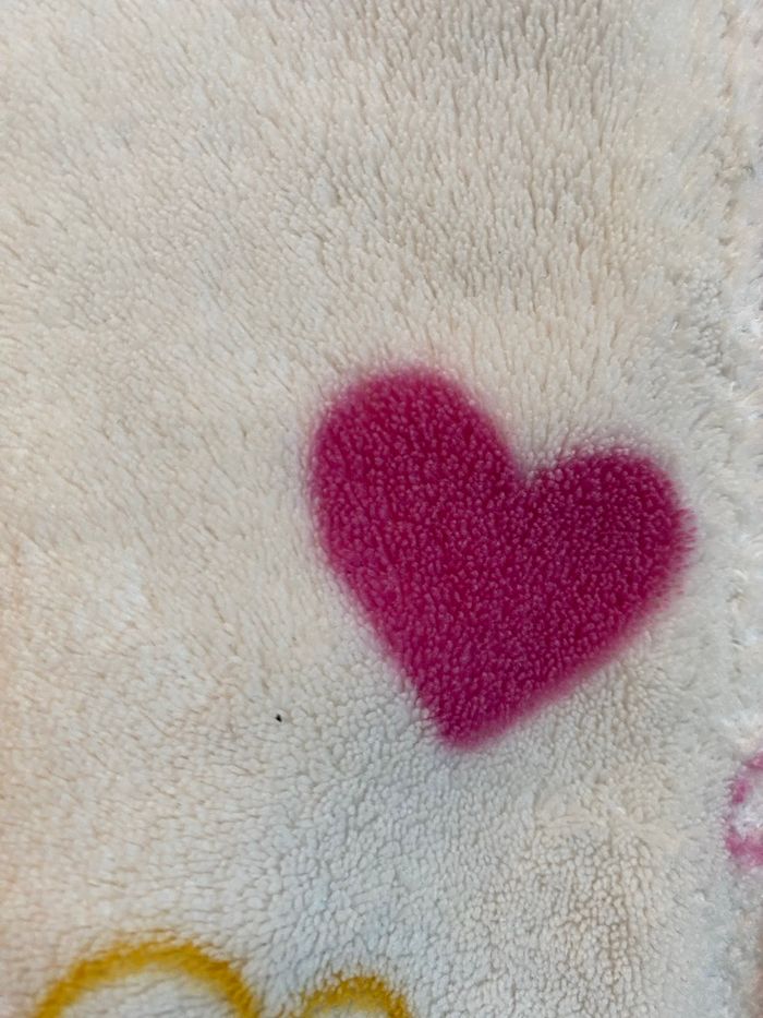 Veste en polaire avec cœurs. La blanc a un peu vieilli.
