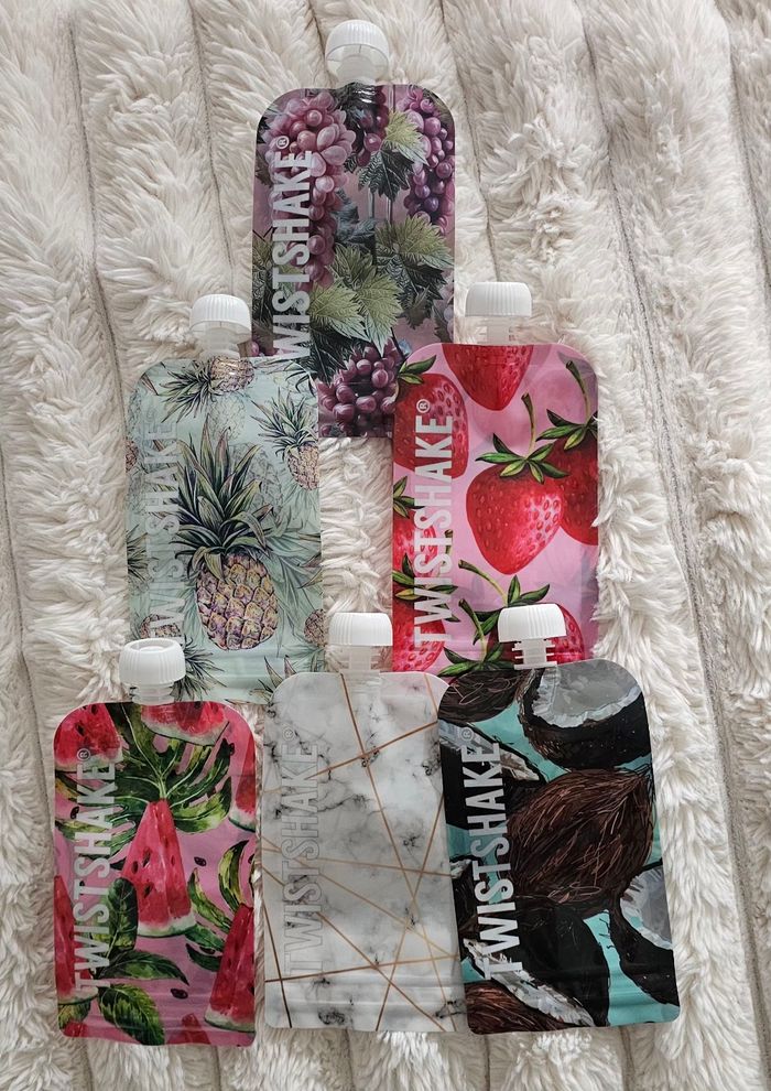 Lot de 6 gourdes réutilisables Twistshake. Compatible lave-vaisselle et congélateur. Neufs