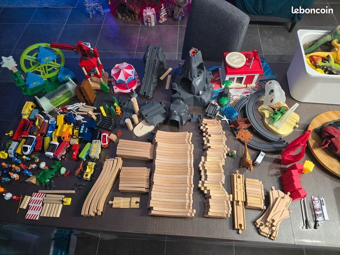 Lot de rails en bois train  - photo numéro 1