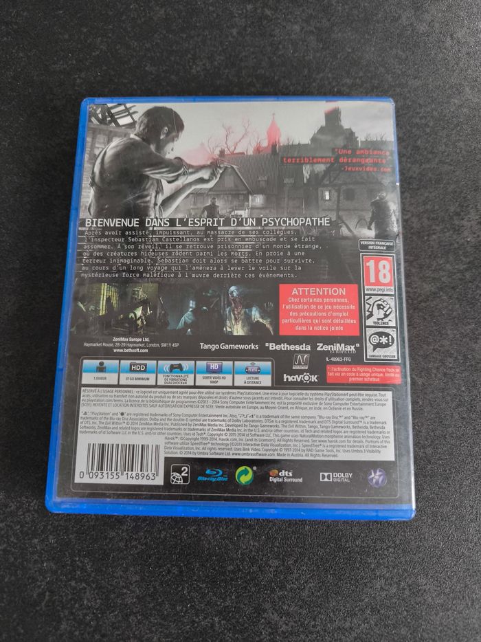The Evil Within sur PlayStation 4. Jeu complet (boîte + disque + livret) en excellent état. Fonctionne parfaitement. Version française. #TheEvilWithin #PS4 #PlayStation4 #SurvivalHorror #JeuxVideo