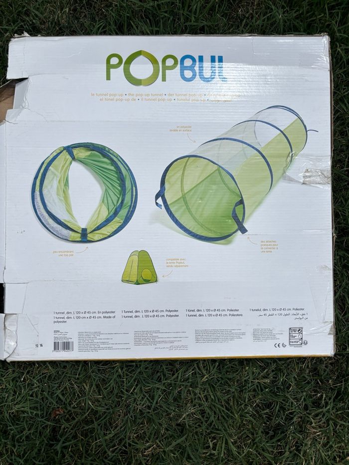 🧒🏻 Tunnel pour enfants de 2-6ans 📏 Dimensions L120 cm D45 cm ⛺️ Compatible avec la tente Popbul 💧 Tissu en polyester lavable à la main —> Facilité de rangement ✅️ En bon état général (quelques accros et boîte abîmée) 🌟 À saisir 📦 Envoi rapide et soigné 🏷 N'hésitez pas à regarder mes articles, il y a des réductions sur les lots 🤗