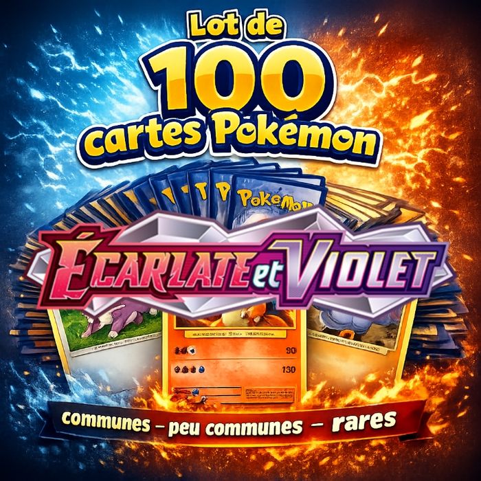 🔥 Lot de 100 Cartes Pokémon Bloc Écarlate et Violet – Communes, Peu Communes & Rares – SANS Énergies – Français 🔥 Je vends un lot de 100 cartes Pokémon en français ✅ Cartes communes ✅ Cartes peu communes ✅ Cartes rares ❌ Sans doubles ❌ Aucune carte énergie 🇫🇷 100% Français 📊 Idéal pour compléter une collection ou démarrer. Les cartes sont neuves (sorties de boosters et stockées soigneusement). Pas de tri spécial, lot aléatoire mais varié des séries EV : 151, Rivalités Destinées, Flammes Obsidiennes, Aventure Ensemble, ...🔥 💰 Prix attractif 📮 Envoi rapide et soigné Possibilité de faire plusieurs lots 100, 200, 300 cartes. N’hésite pas si tu as des questions ! 😊