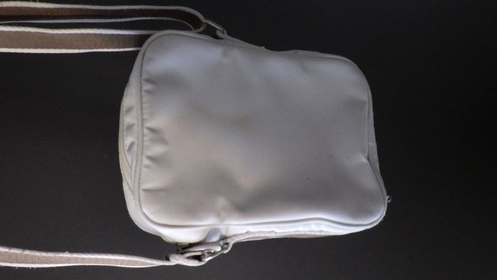 sacoche en toile blanche, bandoulière grise, logo de la marque devant, une poche extérieure, une petite poche à fermeture éclair à l'intérieur et un porte clé mousqueton, curseurs siglés de la marque, je l'ai passée en machine à laver mais il reste quelques traces sur le devant mais rien de très méchant, je signale également une usure au niveau de la sangle (voir photo) elle est abîmée sur 7cm d'un coté seulement, ça ne se voit pas beaucoup et n'empêche en rien une bonne utilisation. De ce fait je la propose à prix modéré. Beaucoup d'autres beaux modèles en vente dans mon dressing, mais aussi des chaussures, des accessoires, des articles pour la maison, dans tous les styles, toutes les tailles, des marques les plus luxueuses aux plus ordinaires, pour tous les budgets. Abonnez vous à mon profil pour recevoir mes nouvelles annonces en priorité !