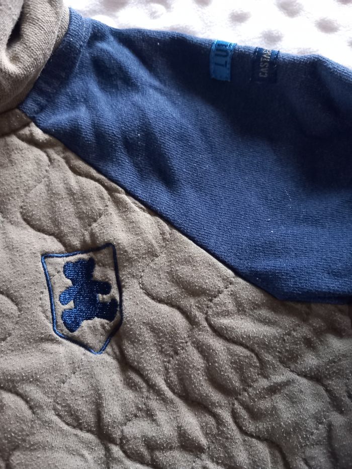 Gilet lulu castagnette 4 ans kaki et bleu marine Un peu de bouloches et couleurs sur pressions enlèves (voir photo)