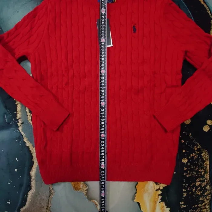 Pull torsadé à col rond Ralph Lauren - Taille L - Rouge logo brodé noir - Neuf - photo numéro 2