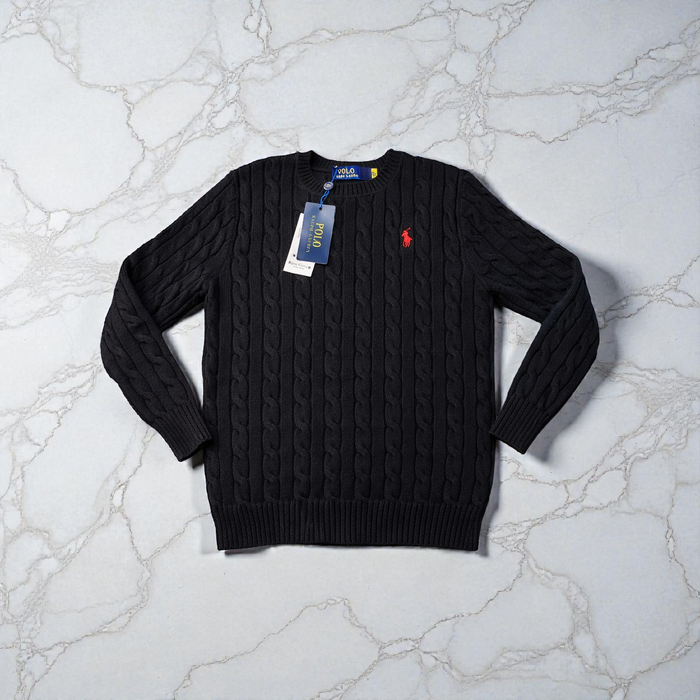 Pull torsadé à col rond Ralph Lauren - Taille M - Noir logo brodé rouge - Neuf