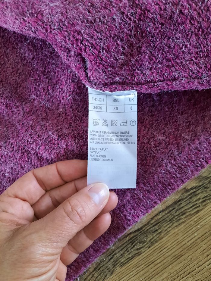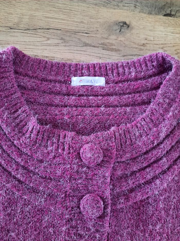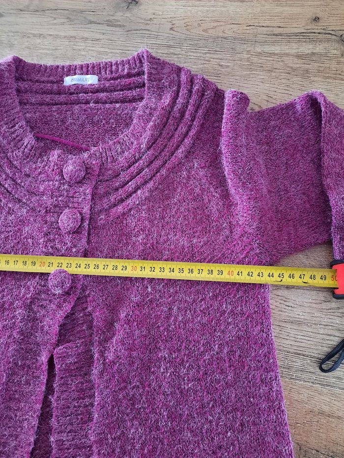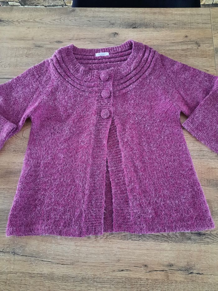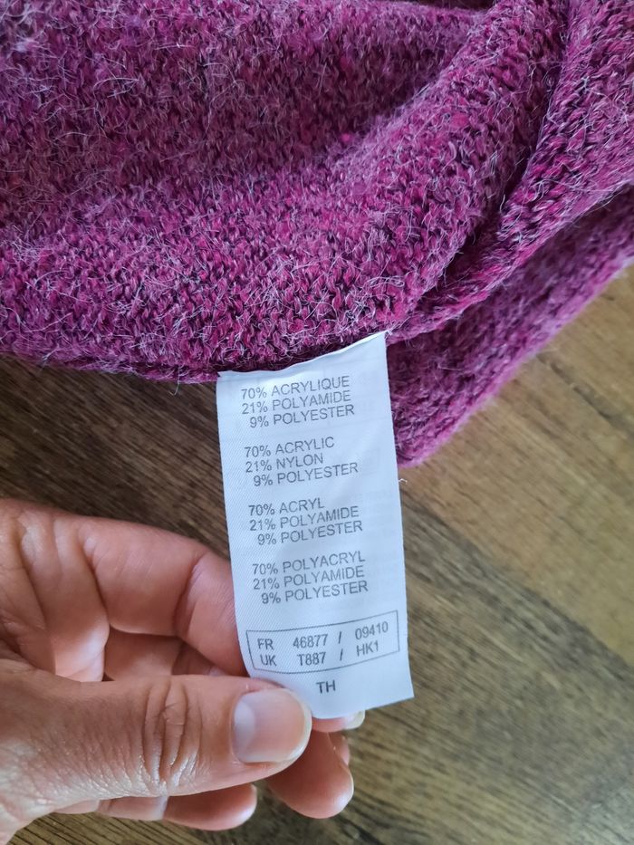 Gilet de forme boléro, manches longues, col rond. Couleur : violet parme 70% acrylique - 21% polyamide (nylon) - 9% polyester Marque : Damart Taille : 34-36