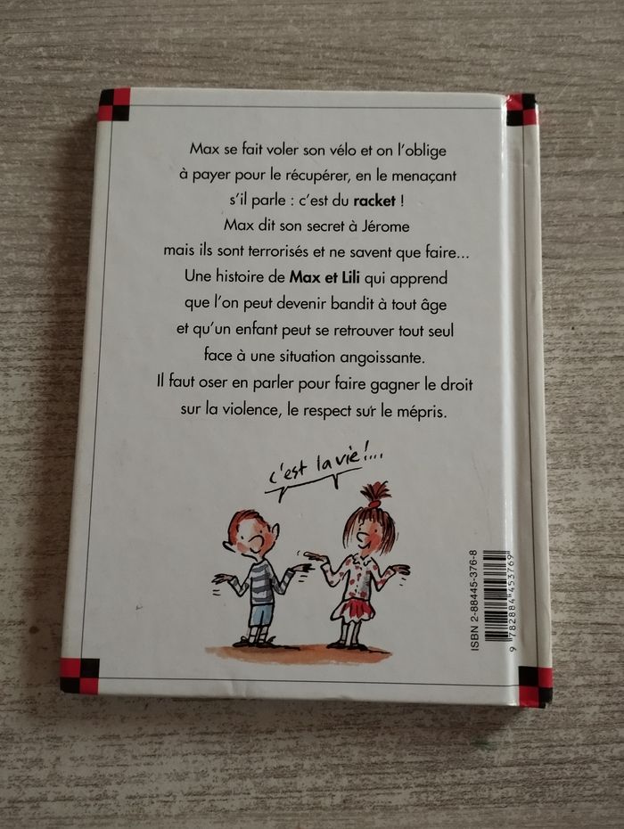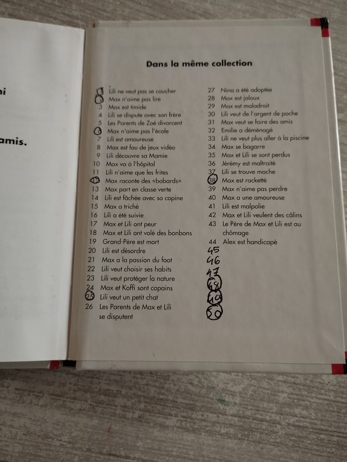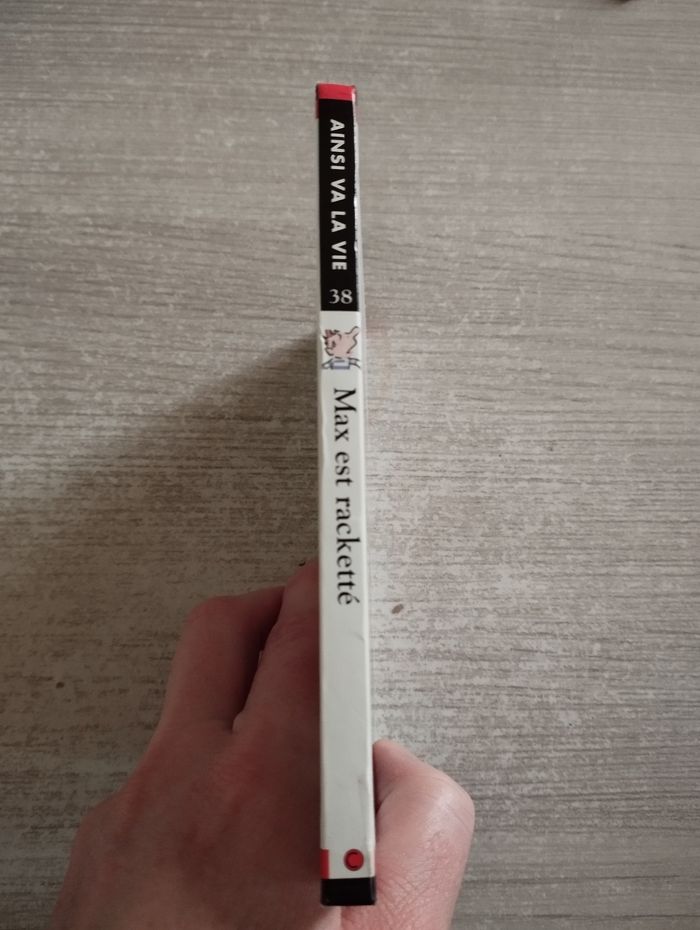 BD Max et Lili t.38 "Max est racketté" tranche du livre recollé et écrit sur la dernière page (voir photo).