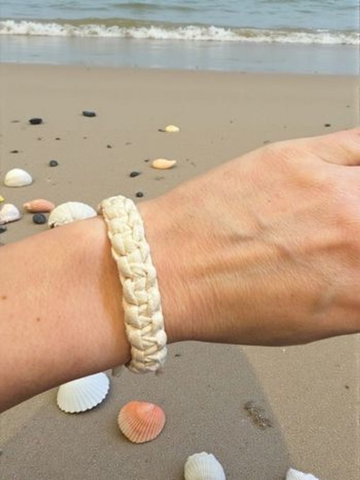 Bracelet beige tissé fait main  - photo numéro 1