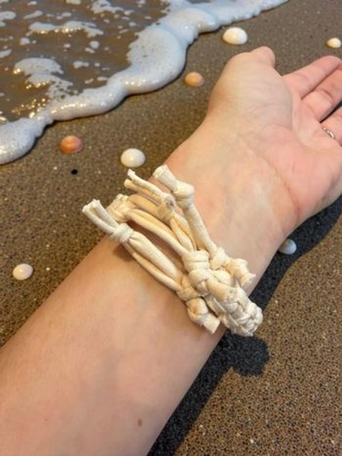 Bracelet beige tissé fait main  - photo numéro 4