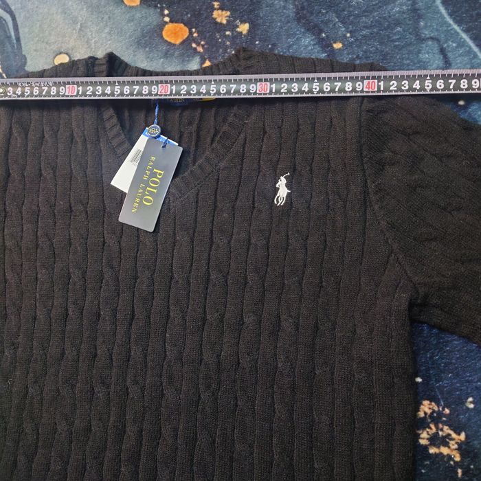 Pull torsadé à  col V Ralph Lauren - Taille L - Noir logo brodé blanc - Neuf - photo numéro 3