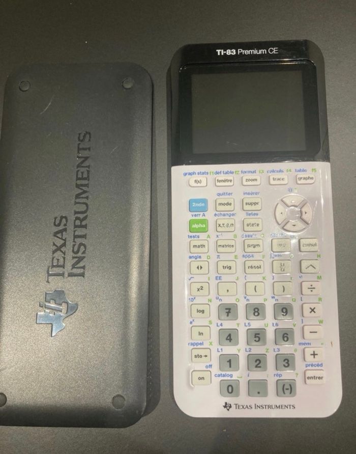 Je vends cette calculatrice graphique TI-83 Premium CE de la marque Texas Instruments, idéale pour le lycée et les études supérieures. - Type de produit : Calculatrice graphique - Marque : Texas Instruments - Modèle : TI-83 Premium CE Très bon état. N'hésitez pas à me contacter si vous avez des questions